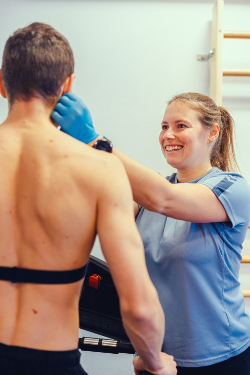 Zentraler Bestandteil ist der Laktatstufentest, bei dem sowohl der Laktatwert als auch die Herzfrequenz gemessen werden. Der Test findet auf dem Laufband statt: Die Belastung wird stufenweise erhöht, und nach jeder Stufe werden Laktat und Herzfrequenz ermittelt. Auf dieser Basis lassen sich die aerobe und anaerobe Schwelle sowie die persönlichen Herzfrequenzzonen bestimmen – essenziell für ein zielgerichtetes Ausdauertraining.